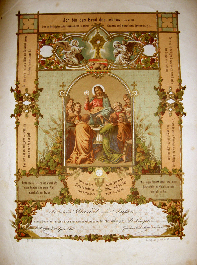 14. Nikolaus STAUDT [Bild1] [Bild2] wurde am 16. Mai 1868 in Außen, Saarland geboren. Er starb am 21. Juni 1948 in Bettingen, Saarland. Er heiratete Anna Maria DÈZES am 23. Februar 1897 in Bettingen, Saarland 1. [Eltern]